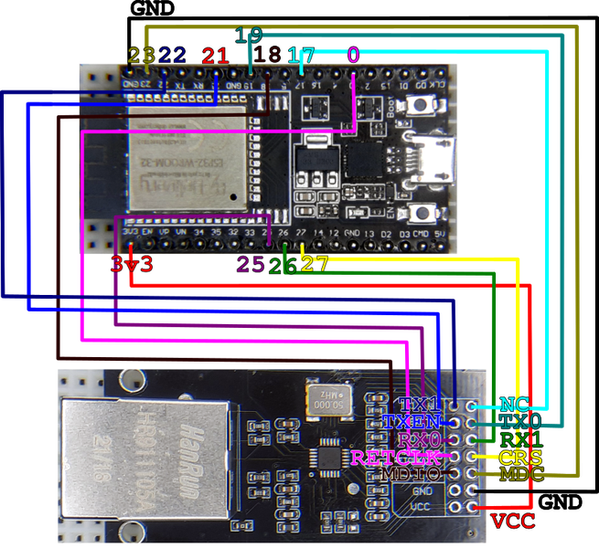 Which would imply we don't need the clock sync at all, but in reality, from my limited manual testing, there is a very defined difference in responsiveness between having the clock being fed into the ESP32 or not, and my best guess is that there's a good error correction algorithm being used and with enough retries the two parties can communicate fairly well, but not as well as with the clock being shared. I have no evidence to support that theory, and it might just be that the REFCLK line is only needed if the transceiver does not have its own clock generator, depending on the MCU. Still, I might dig a little deeper onto this by reading the LAN8720 datasheet, but for now I have a working version and I really wanted to share one more thing in this post, as hinted at the very start of it;