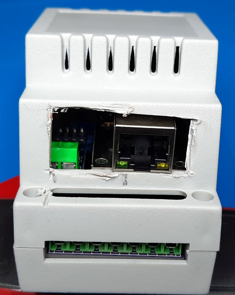 I have a small assortment of DIN Rail mountable cases, in different widths, for Raspberry PIs or generic project boxes. The latter type is what I had my eye for on this project.