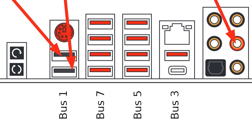 But notice how the two devices, the mouse and keyboard, are on the same USB bus? It turns out that this particular motherboard, the MSI X399 Gaming Pro Carbon AC, has a pretty neat arrangement of USB ports physically, and while I'm sure other motherboards will have similar approaches as it makes sense for the electronic design, this next schematic applies only for this particular board, others will most likely vary quite a bit;