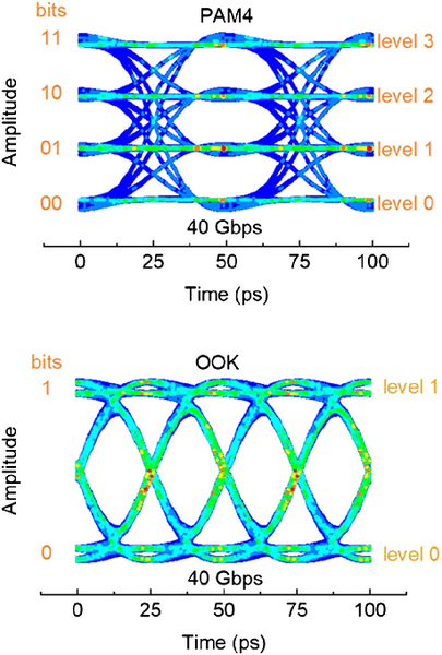 Vertical-cavity surface-emitting lasers for data communication and sensing - Scientific Figure on ResearchGate. Available from: https://www.researchgate.net/figure/Simulated-PAM4-and-on-off-keying-OOK-eye-diagrams-at-40-Gbps-with-a-constant-modulation_fig2_330267686
