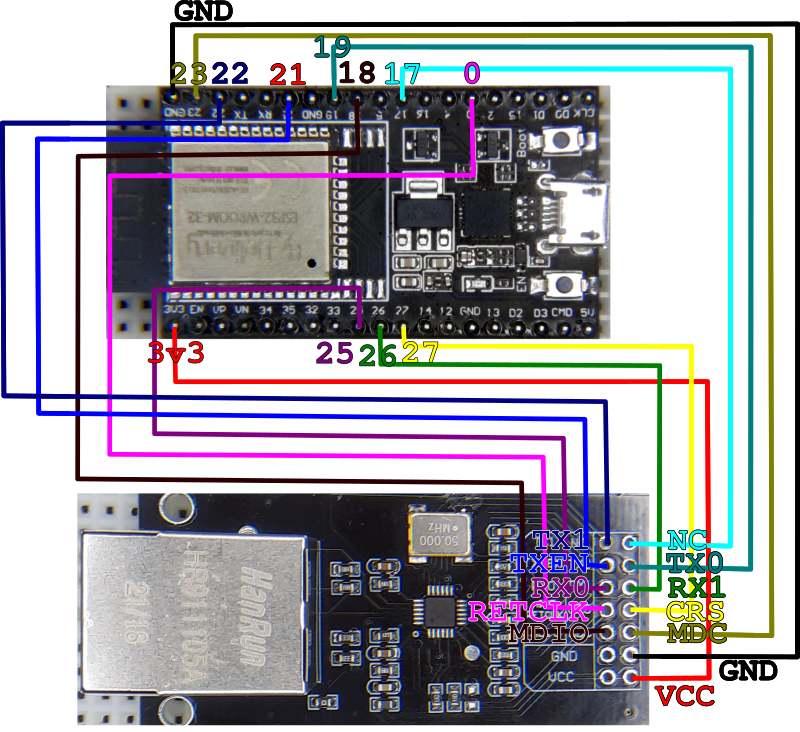 Which would imply we don't need the clock sync at all, but in reality, from my limited manual testing, there is a very defined difference in responsiveness between having the clock being fed into the ESP32 or not, and my best guess is that there's a good error correction algorithm being used and with enough retries the two parties can communicate fairly well, but not as well as with the clock being shared. I have no evidence to support that theory, and it might just be that the REFCLK line is only needed if the transceiver does not have its own clock generator, depending on the MCU. Still, I might dig a little deeper onto this by reading the LAN8720 datasheet, but for now I have a working version and I really wanted to share one more thing in this post, as hinted at the very start of it;